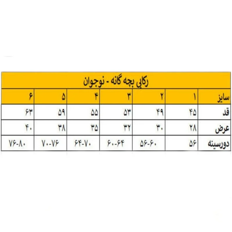 رکابی پسرانه آریا با پارچه پلیاستر-پنبه انتخابی ایدهآل برای راحتی بیشتر در حرکت و جلوگیری از ایجاد حساسیت برای پوست میباشد، این رکابی در ۶سایز مناسب ۴تا ۱۲سال میباشد.